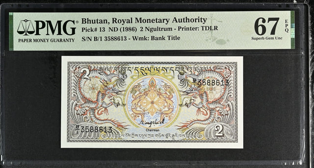 Bhutan 2 Ngultrum ND 1986 P 13 Superb Gem UNC PMG 67 EPQ