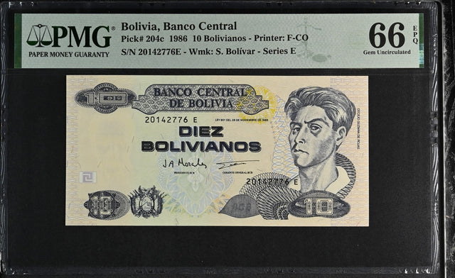 Bolivia 10 Bolivianos 1986 P 204 c Gem UNC PMG 66 EPQ