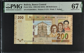 Bolivia 200 Bolivianos 1986 ND 2018 P 252 a Superb Gem UNC PMG 67 EPQ