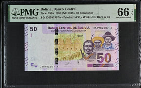 Bolivia 50 Bolivianos 1986 ND 2018 P 250 a Gem UNC PMG 66 EPQ
