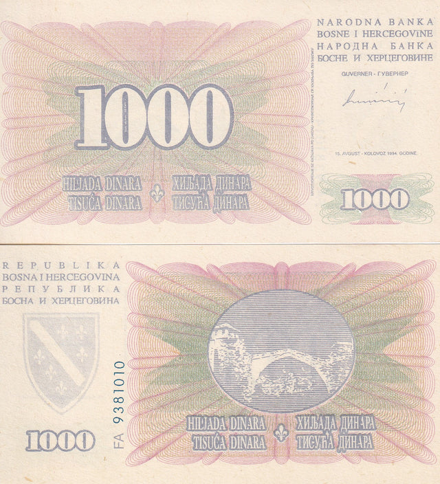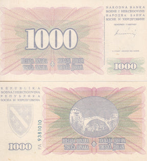 BOSNIA 1000 Dinara 1994 P46 b TRIAL PRINT ON PLAIN PAPER PROOF UNC