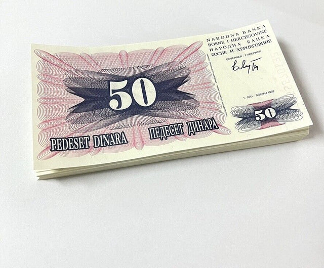 Bosnia 50 Dinara 1992 P 12 UNC LOT 100 PCS 1 Bundle