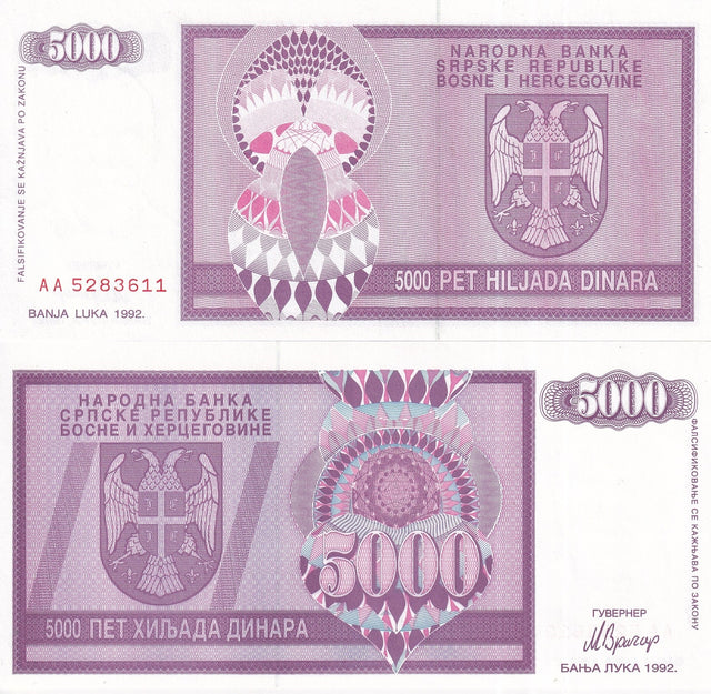 Bosnia 5000 Dinara 1992 P 138 UNC