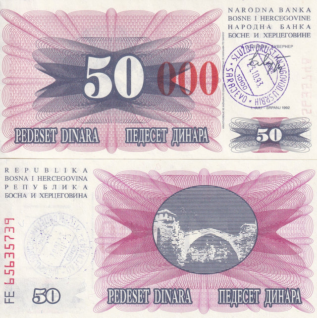 Bosnia 50000 Dinara 23.10.1993 P 55 h UNC