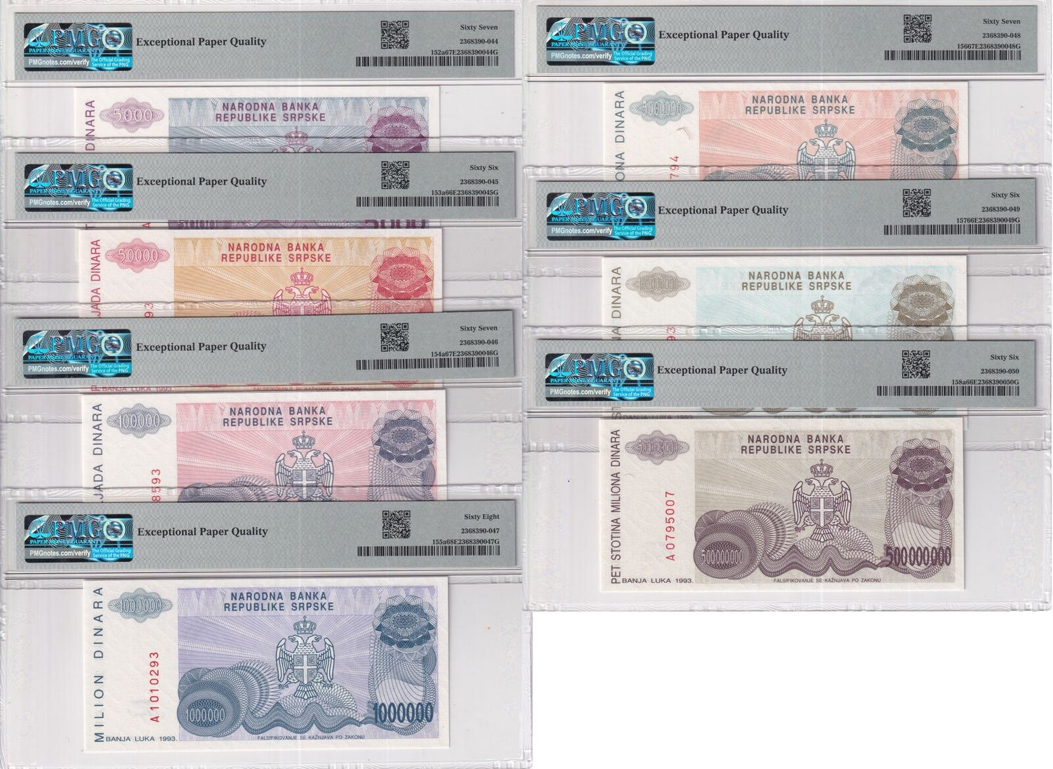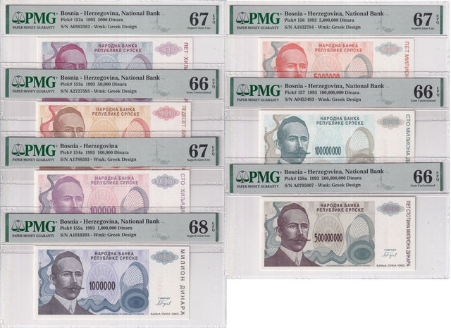 Bosnia Set 7;5000 -500 MlLLDinars 1993 P 152-158 Superb Gem UNC PMG 66 67 68 EPQ