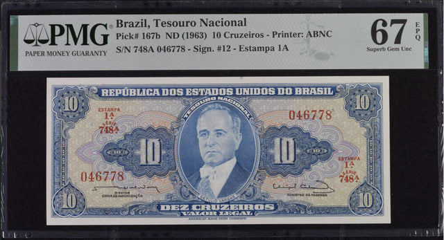 Brazil 10 Cruzeiros ND 1963 P 167 b Superb Gem UNC PMG 67 EPQ