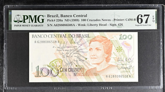 Brazil 100 Cruzados Novos ND 1989 P 220 a Superb Gem UNC PMG 67 EPQ TOP POP