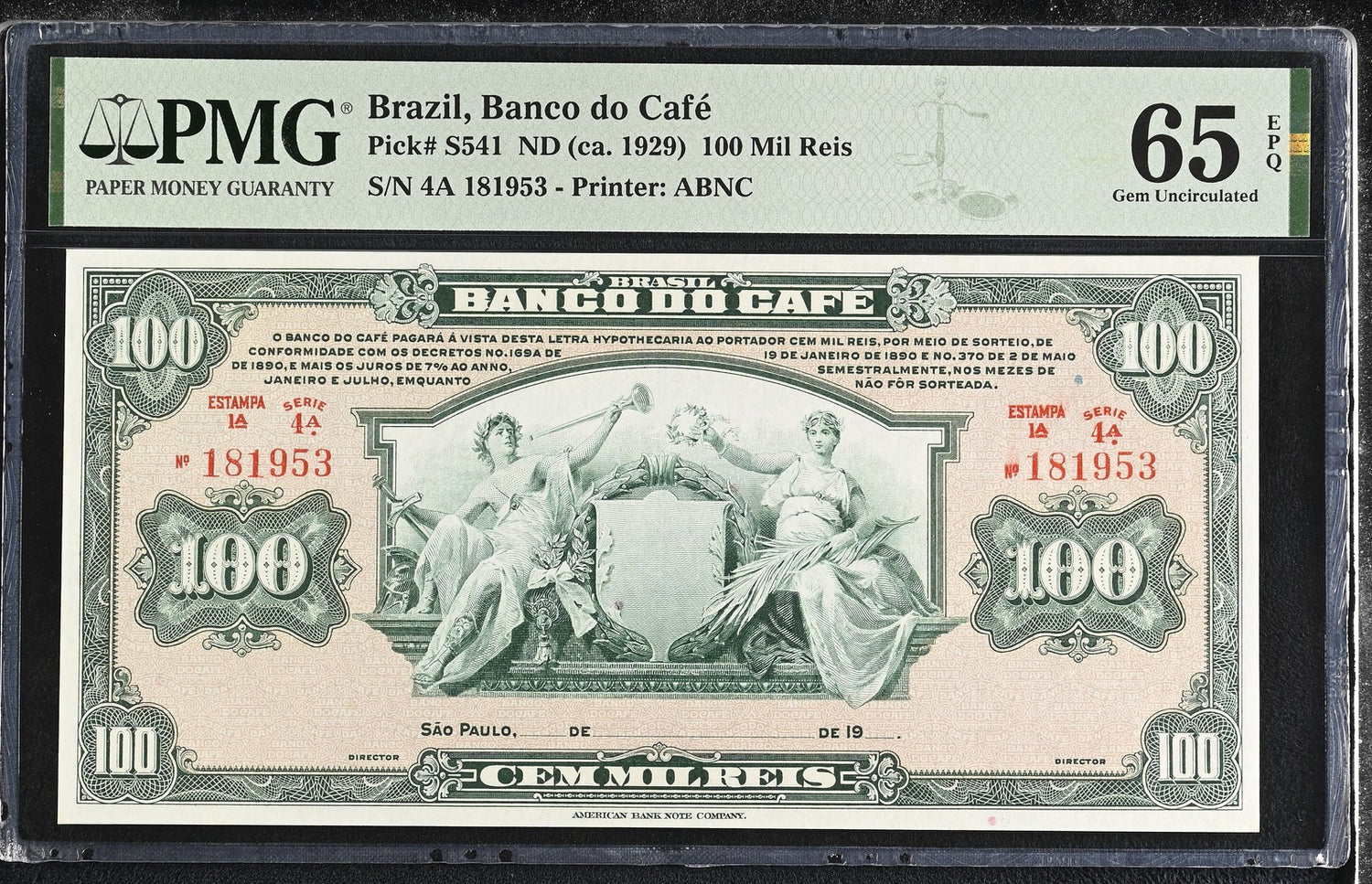 Brazil 100 Milreais ND 1929 P S541 Gem UNC PMG 65 EPQ TOP POP
