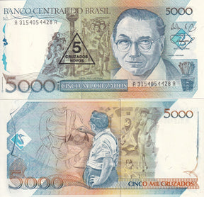 Brazil 5 C.N on 5000 Cruzados ND 1989 P 217 a UNC