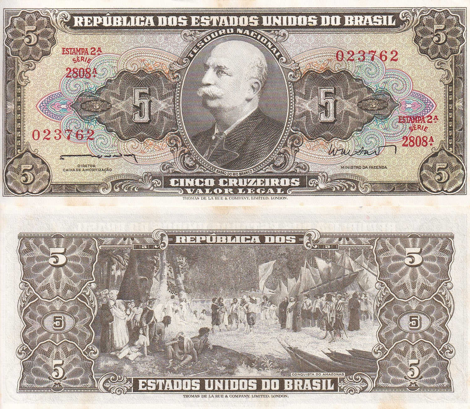 Brazil 5 CRUZEIROS ND 1962-1964 P 176 a UNC Little Yellow Tone