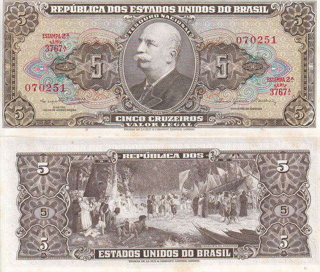 Brazil 5 CRUZEIROS ND 1962-1964 P 176 d UNC Little Yellow Tone