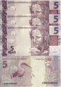 Brazil 5 Reais 2010 BIRD P 253 f New Sign Paulo Guedes & Roberto UNC LOT 3 PCS