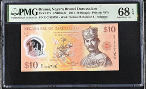 Brunei 10 Ringgit 2011 P 37 a Polymer Superb Gem UNC PMG 68 EPQ