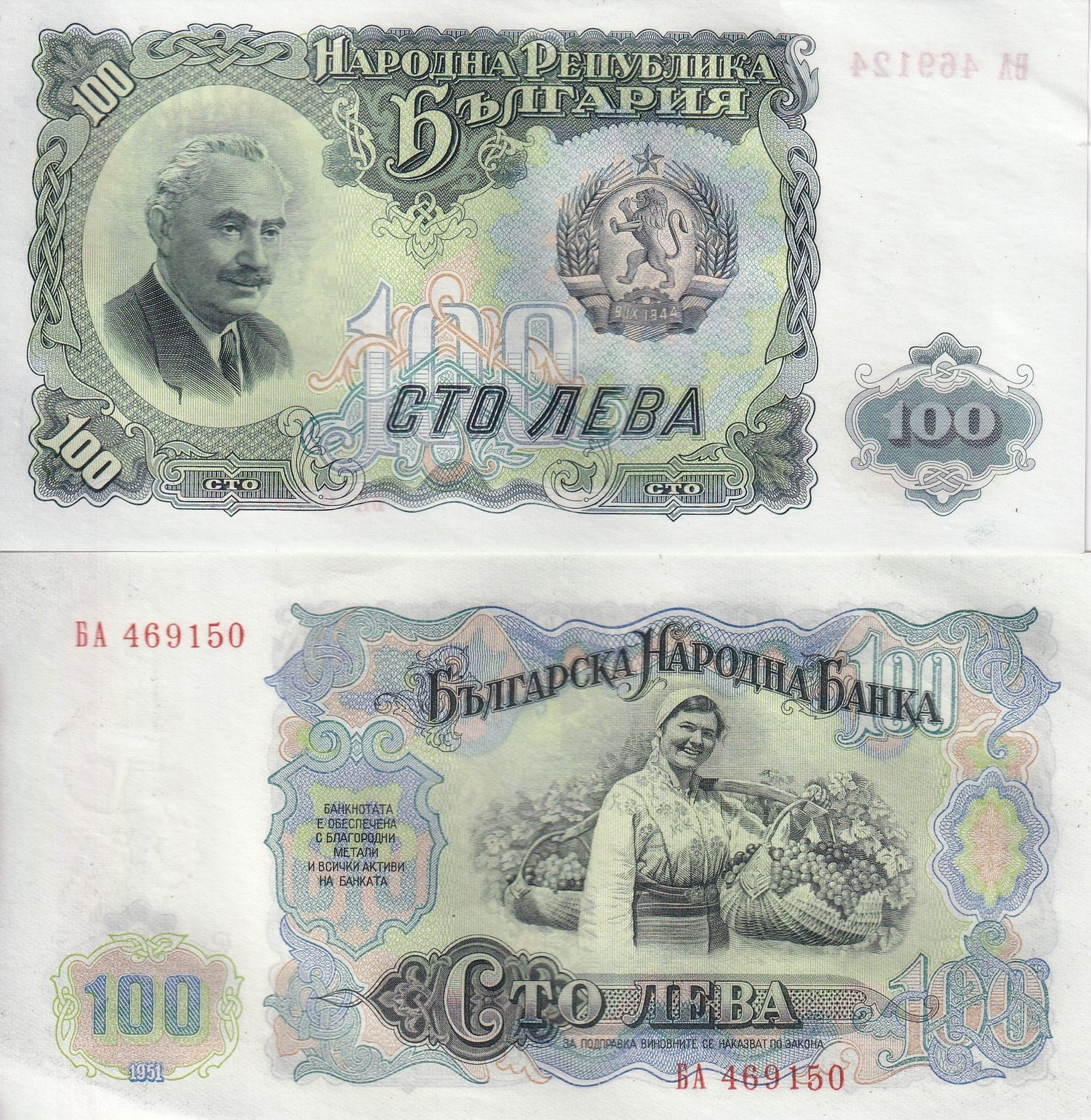 Bulgaria 100 Leva 1951 P 86 AUnc