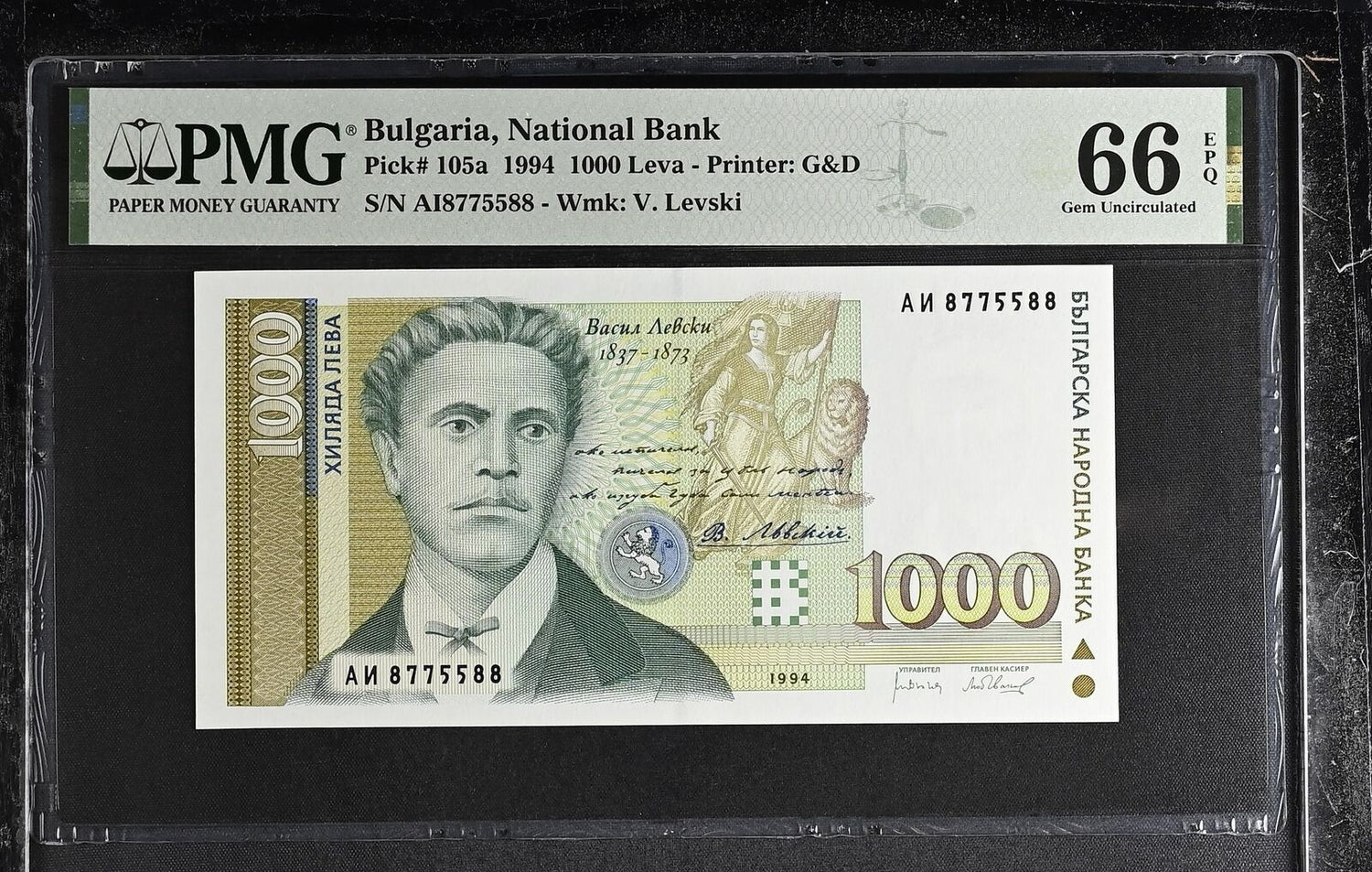 Bulgaria 1000 Leva 1994 P 105 a Gem UNC PMG 66 EPQ
