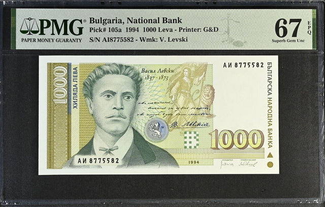 Bulgaria 1000 Leva 1994 P 105 a Superb Gem UNC PMG 67 EPQ