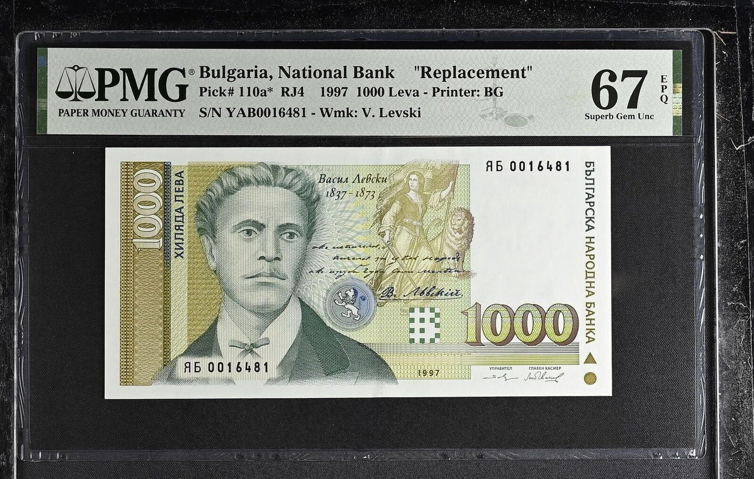 Bulgaria 1000 Leva 1997 P 110 a* Replacement Superb GEM UNC PMG 67 EPQ
