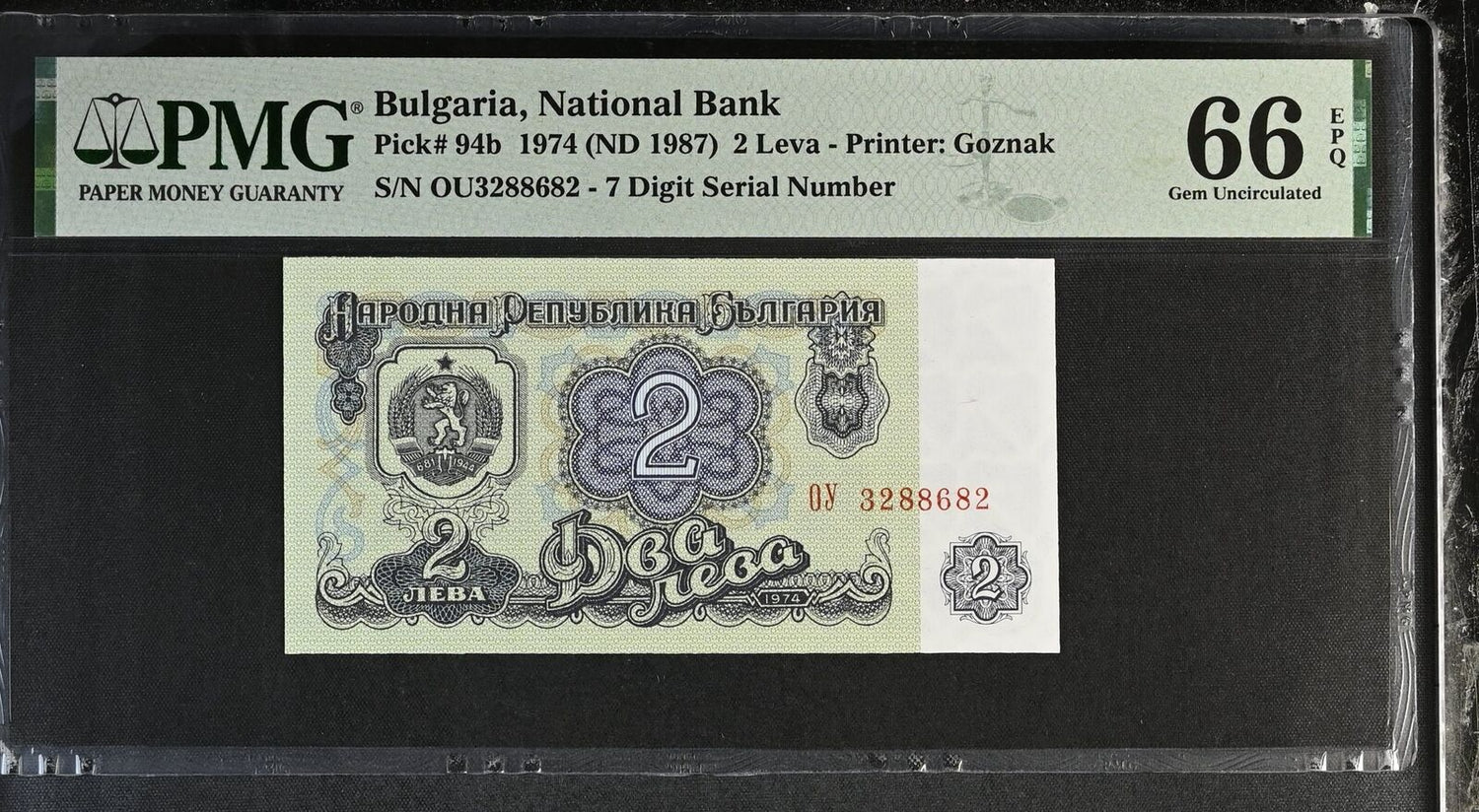 Bulgaria 2 Leva 1974 P 94 b Gem UNC PMG 66 EPQ
