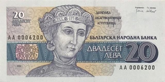 Bulgaria 20 Leva 1991 AA prefix P 100 AUnc