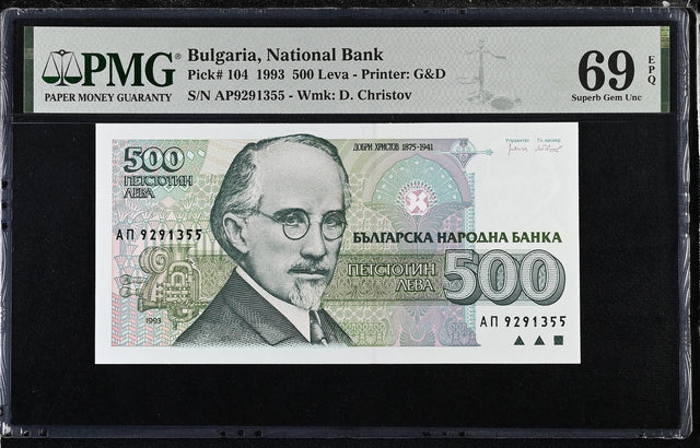 Bulgaria 500 Leva 1993 P 104 Superb Gem UNC PMG 69 EPQ
