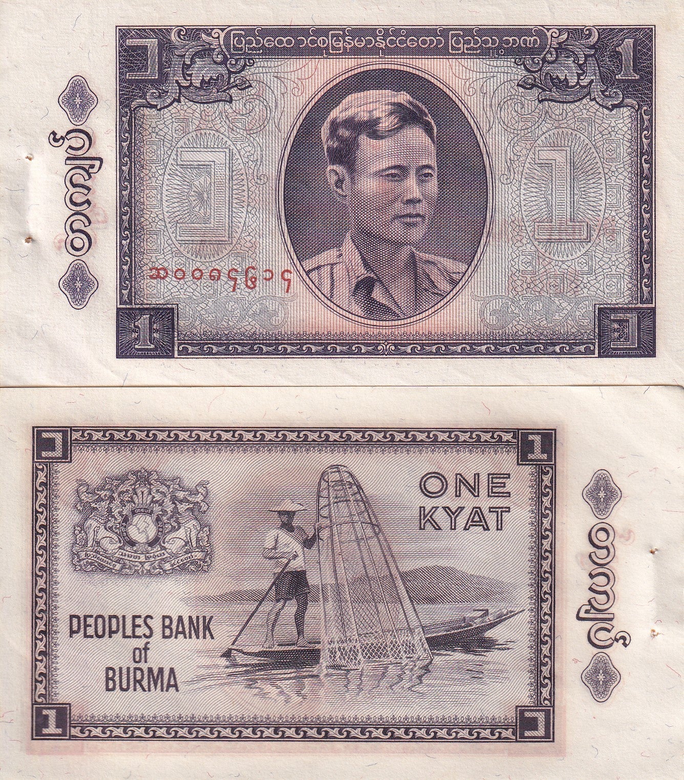 BURMA 1 KYAT ND 1965 P 52 AUnc Little Age Tone W/H