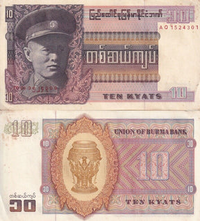 Burma 10 Kyats ND 1973 P 58 UNC LITTLE Y TONE