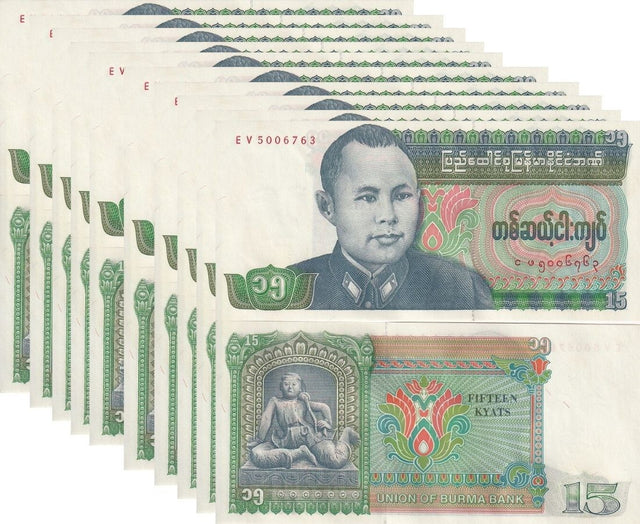 Burma 15 Kyats 1986 P 62 LOT 10 UNC