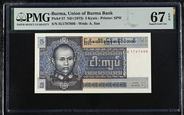 Burma 5 Kyats ND 1973 P 57 Superb Gem UNC PMG 67 EPQ