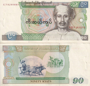Burma 90 Kyats MYANMAR ND 1987 P 66 AUnc Little Tone W/H