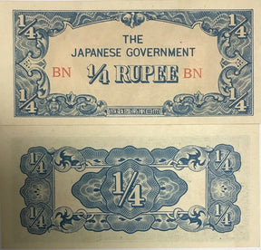 Burma Japanese Occupation 1/4 Rupee ND 1942 P 12 BLOCK LETTER BN AUnc