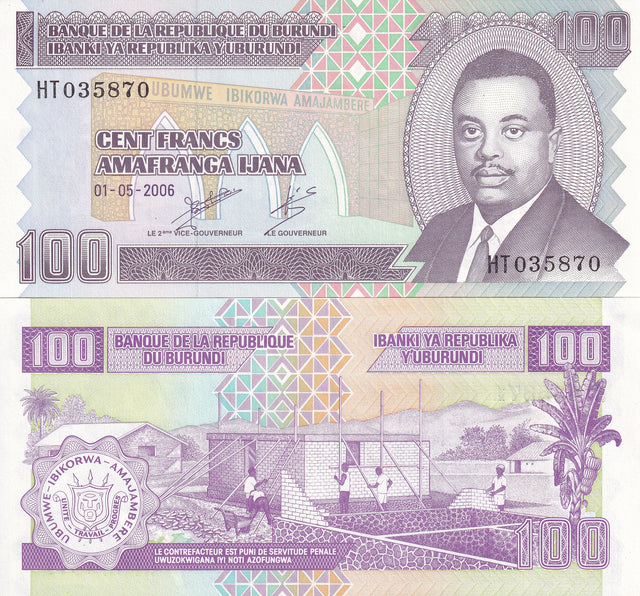 BURUNDI 100 FRANCS 2006 P 37 UNC