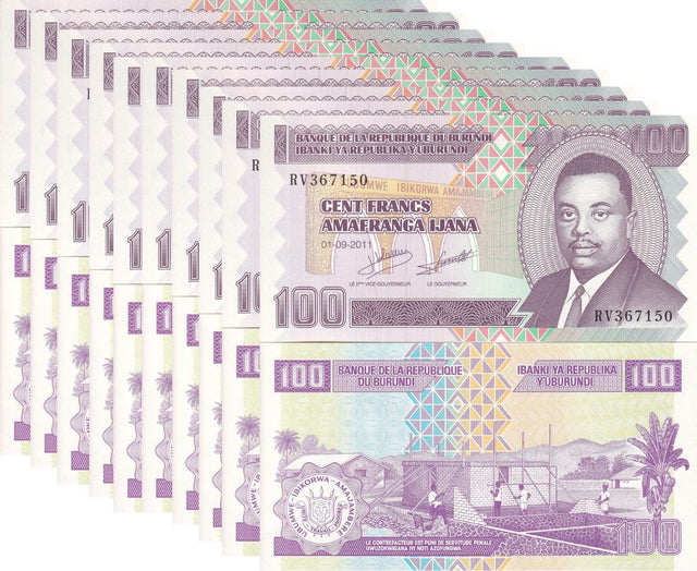 Burundi 100 Francs 2011 P 44 UNC LOT 10 PCS