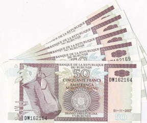 Burundi 50 Francs 2007 P 36 g UNC LOT 5 PCS