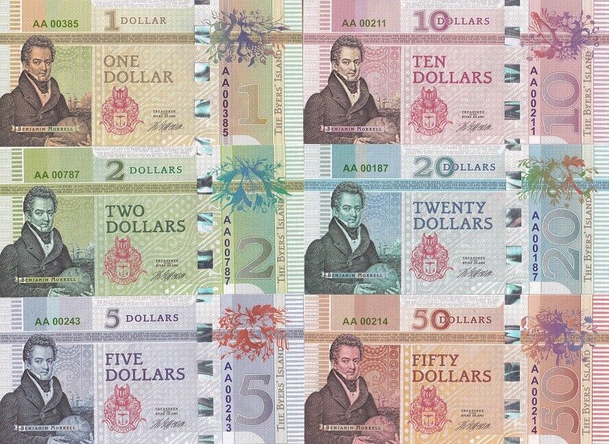 Byers Island Set 6 1 2 5 10 20 50 Dollars 2018 Ship Bird Fantasy