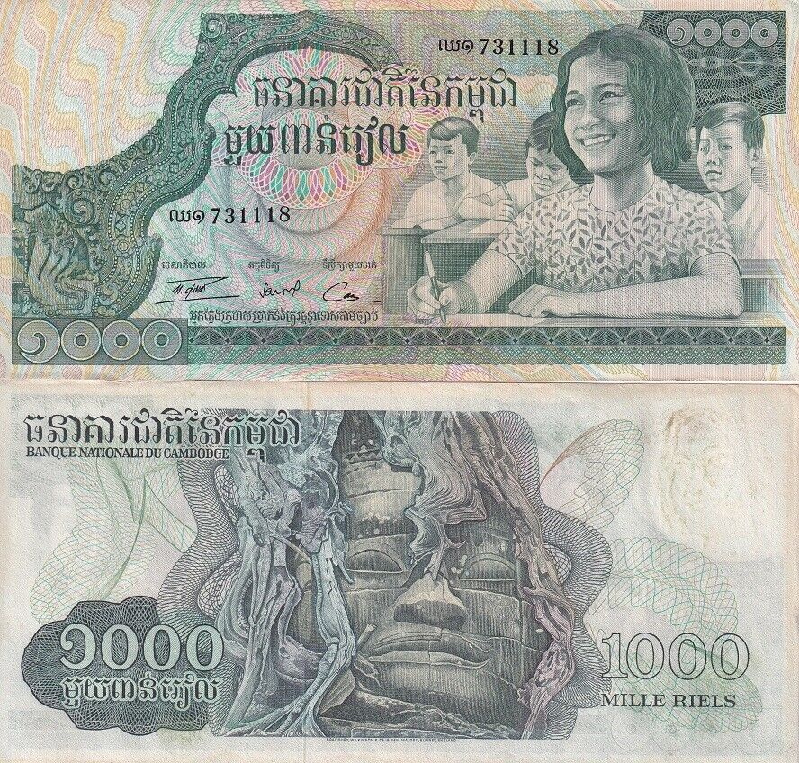 Cambodia 1000 Riels ND 1973 P 17 lot 10 XF = EF