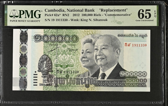 Cambodia 100000 Riels 2012 Comm. P 62 a* Replacement Gem UNC PMG 65 EPQ