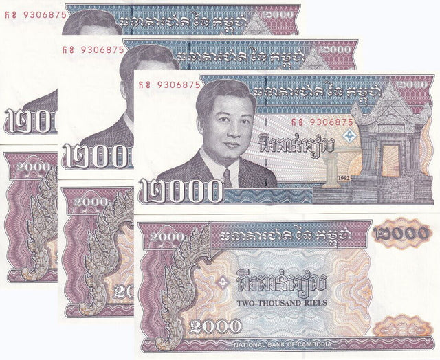 Cambodia 2000 Riels 1992 P 40 UNC LOT 3 PCS