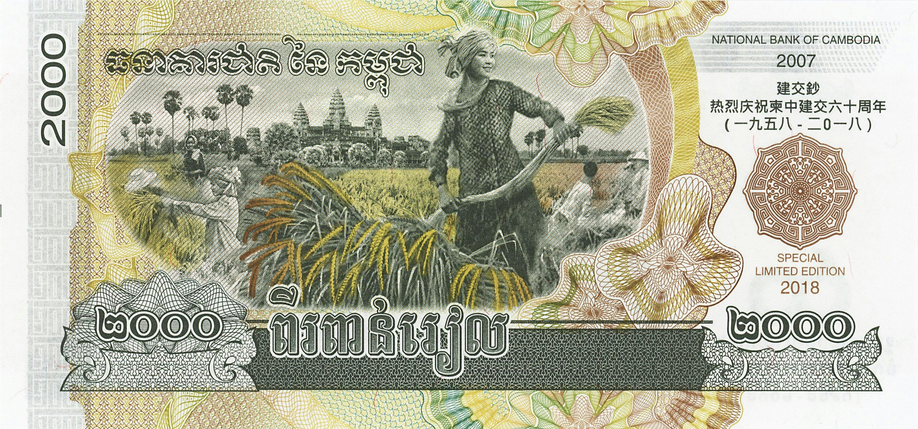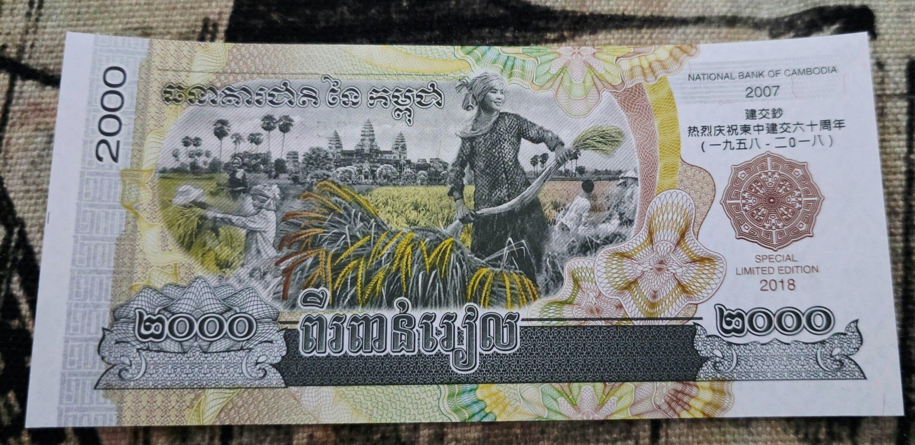 Cambodia 2000 Riels 2018 60th Commemorative China and Cambodia P 71 UNC