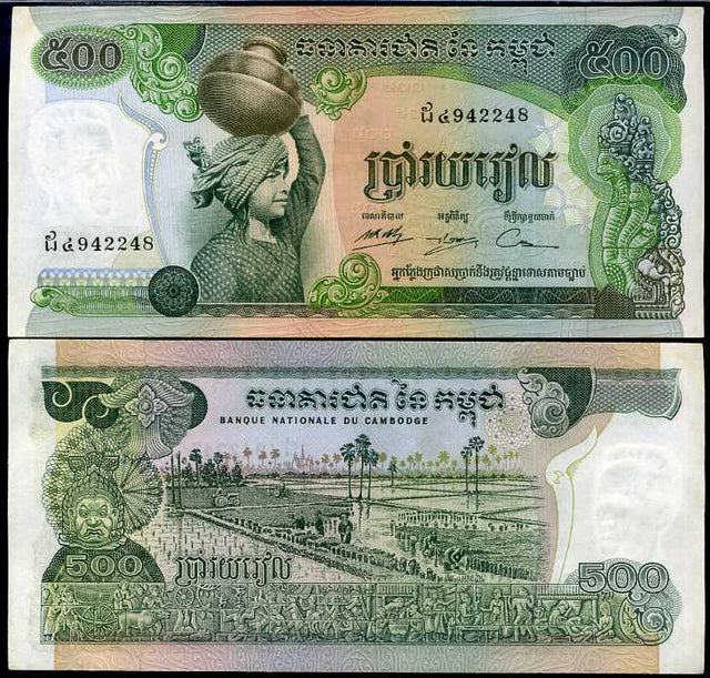 Cambodia 500 Riels ND 1973 P 16 BIG AU-UNC LITTLE TONE