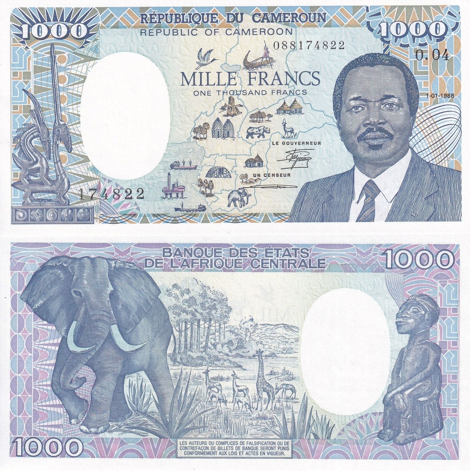 Cameroun 1000 Francs 1988 P 26 a UNC