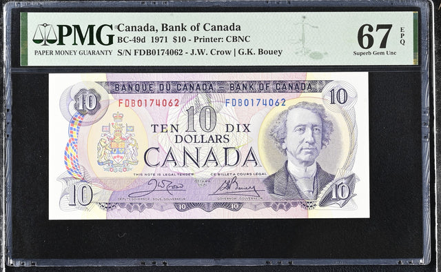 Canada 10 Dollars 1971 P 88 BC-49d Crow Bouey Superb Gem UNC PMG 67 EPQ