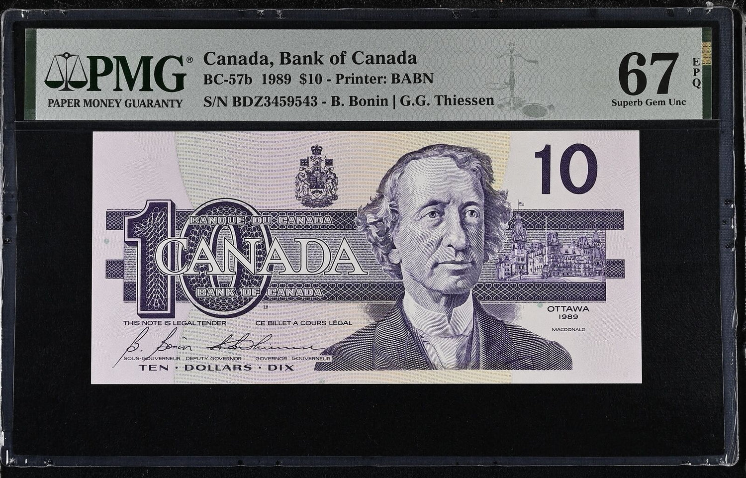 Canada 10 Dollars 1989 Sign Bonin & Thiessen P 96 b Superb Gem UNC PMG 67 EPQ