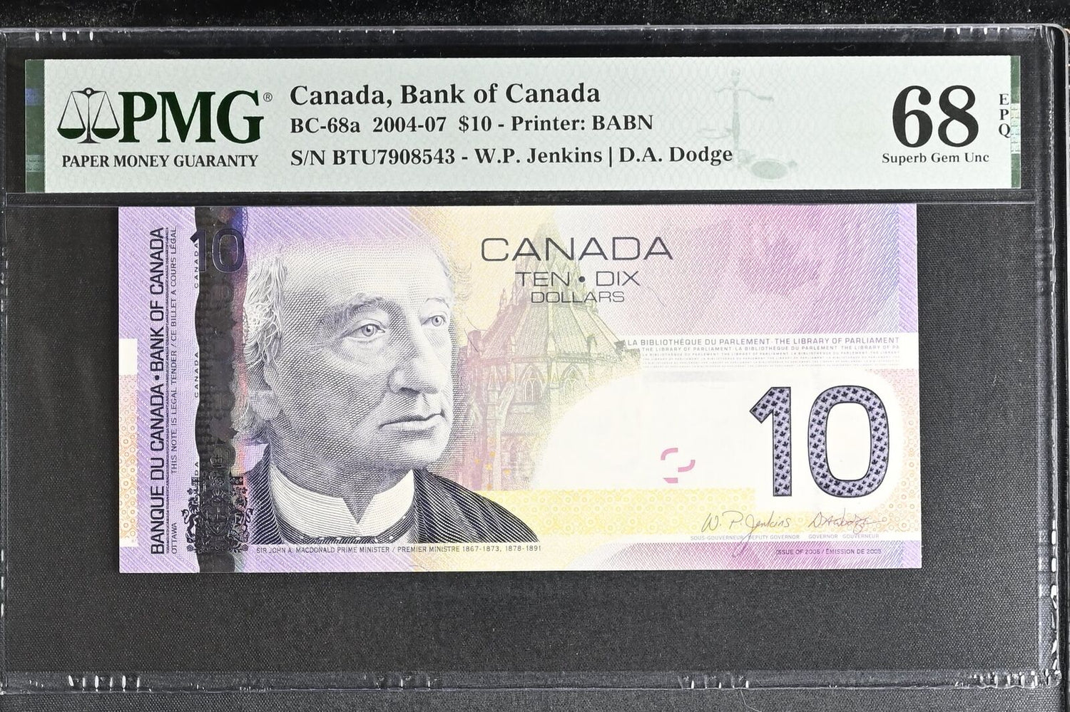 Canada 10 Dollars 2004-2007 P 102Aa Jenkins Dodge Superb Gem UNC PMG 68 EPQ