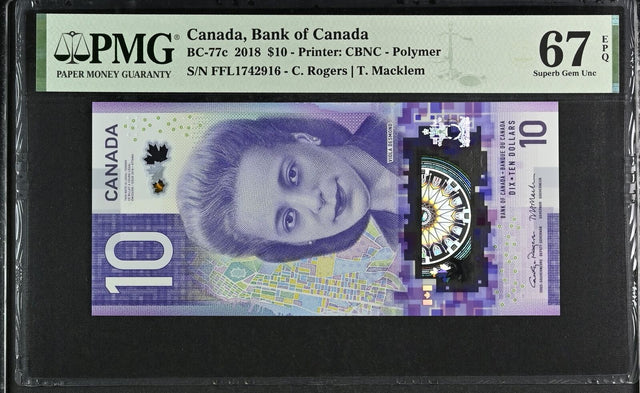 Canada 10 Dollars 2018 P 113 Polymer Rogers Macklem Superb Gem UNC PMG 67 EPQ