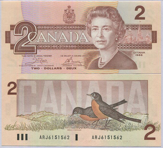 Canada 2 Dollars 1986 P 94 a Sign Crow Bouey AUnc