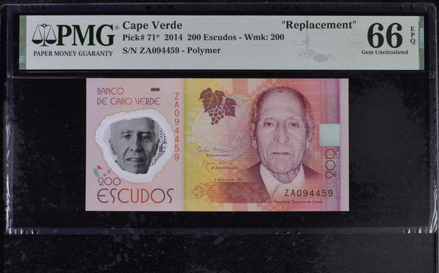 Cape Verde 200 Escudos 2014 P 71* Replacement ZA Prefix Gem UNC PMG 66 EPQ