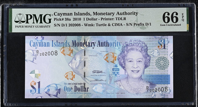 Cayman Islands 1 Dollar 2010 P 38 a D/1 Gem UNC PMG 66 EPQ