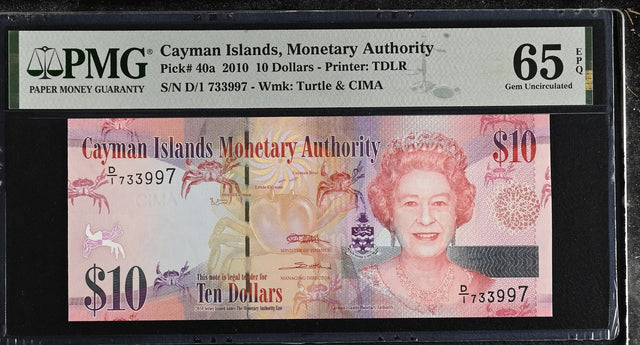Cayman Islands 10 Dollars 2010 P 40 a Gem UNC PMG 65 EPQ