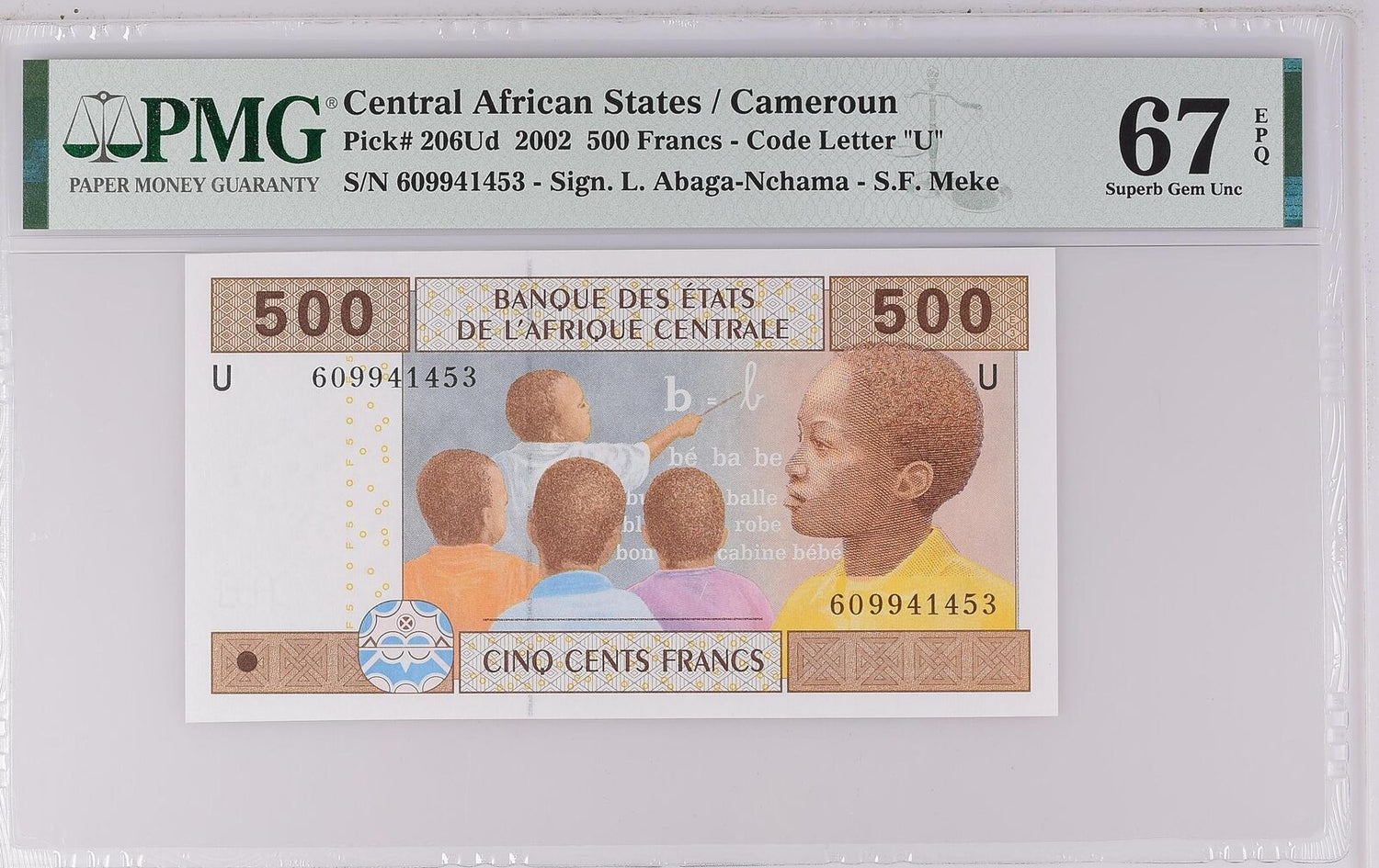 Central African Cameroun 500 Francs 2002 P 206Ud Superb Gem UNC PMG 67 EPQ
