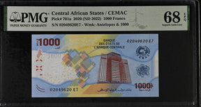 Central African States 1000 Francs 2020 ND 2022 P 701 Superb Gem UNC PMG 68 EPQ